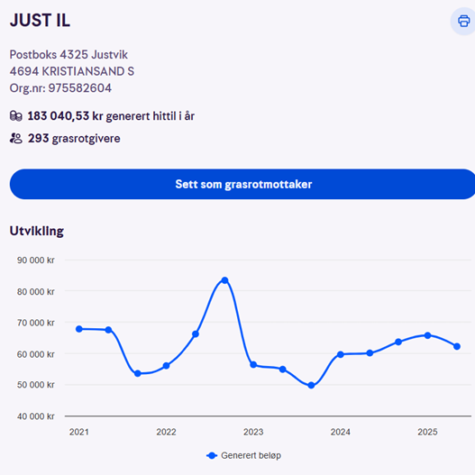 Over 290 tippere gir sin Grasrotandel til Just IL, uke etter uke, året i gjennom. Med over 180 000 generert til Just IL hittil i 2025, er disse tipperne vår største «sponsor». Vi setter umåtelig stor pris på midlene Grasrotandelen bidrar med til idrettslaget vårt!