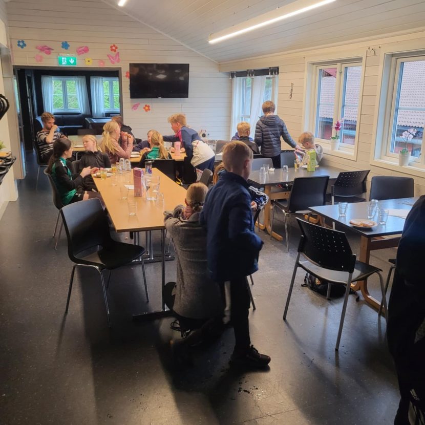 I 2024 var fotballgruppa tilbake på Justvikbanen, men det var først i år at de fikk i gang kveldsmatarrangementene side. Første tirsdag i måneden arrangerer fotballgruppa kveldsmat for sine barne- og ungdomslag. Dette betyr at lagene kommer inn på Justvik bydelshus etter tirsdagstreningen sin og får et enkelt og sunt kveldsmåltid. Ordningen fungerer kjempebra og det er mange som benytter seg av tilbudet. Tirsdag 6.5. var sesongen andre kveldsmatarrangement. Nå gjenstår juni-arrangementet, før vi kommer sterkt tilbake igjen til høsten.