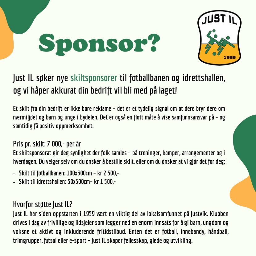 Just IL søker nye skiltsponsorer til fotballbanen og idrettshallen, og vi håper akkurat din bedrift vil bli med på laget!